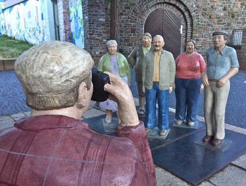 Di ritorno dal mio giro in bicicletta dal Belgio ho fatto una sosta per pernottare in un paesino lungo l’autostrada in Germania. Girovagando in cerca di un posto dove mangiare mi sono imbattuto in questo simpatico gruppo di “turisti “. ![]() |